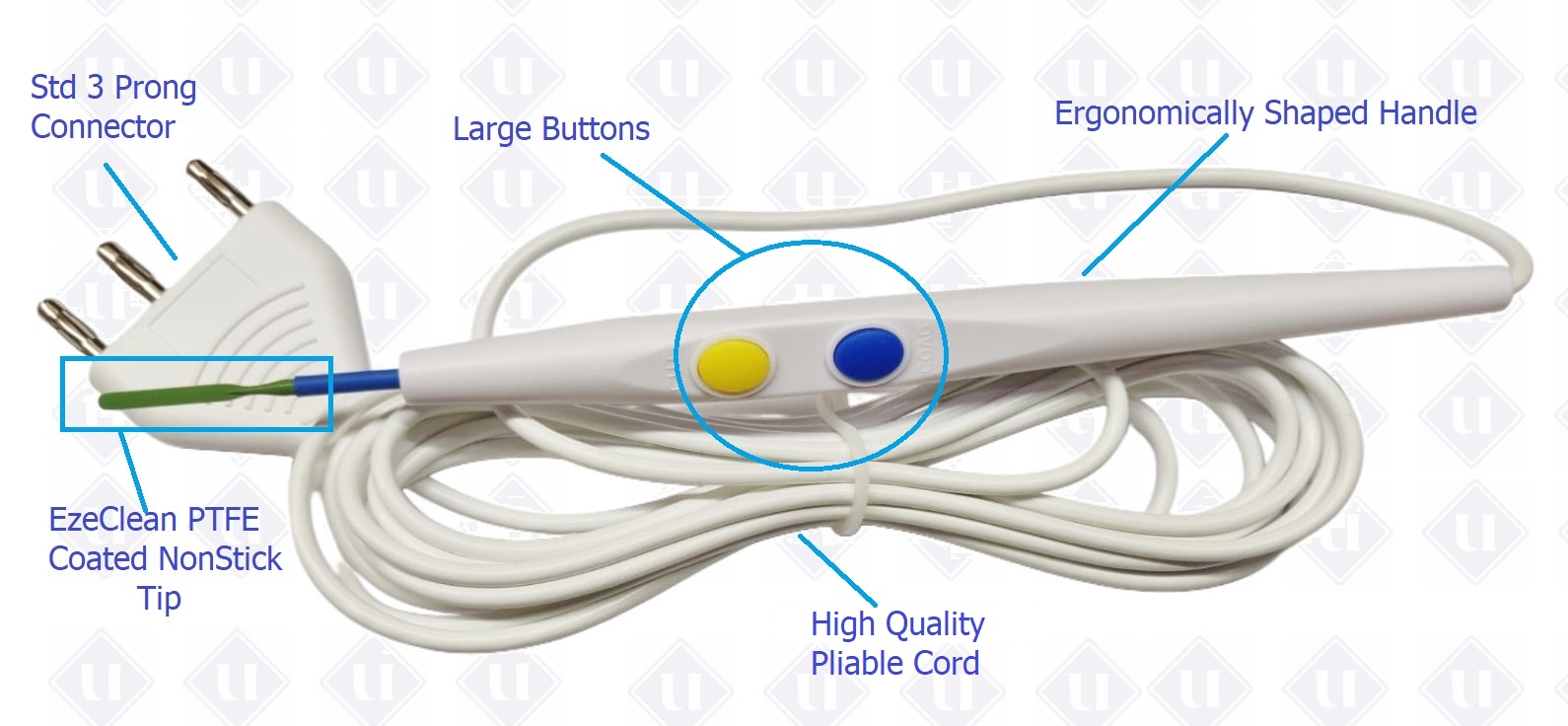 Disposable Hand control Button Switch Electrosurgical Pencil with 2.5” Eze Clean PTFE Non-Stick Blade Electrode | Ref: HP2250 |